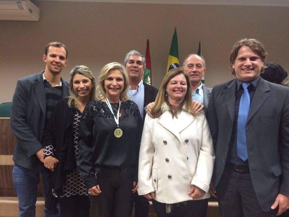 Astrid Barato foi uma das dez personalidades que receberam medalha “Vereadora Dilma do Espírito Santo” na noite de segunda feira .