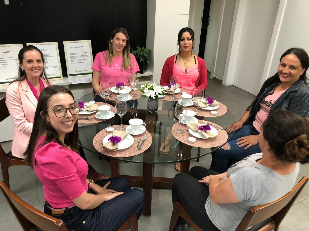 Na Carbonífera Catarinense realizamos o Chá Rosa, todas as mulheres do time foram convidadas para uma tarde diferente. Além da deliciosa mesa de chá as mulheres tiveram uma palestra com a médica ginecologista Katiane Brugnara Zanini com o propósito de orientar a sobre o diagnóstico precoce do câncer de mama, compartilhar informações sobre a prevenção e ressaltar a importância de olhar com atenção para a saúde.