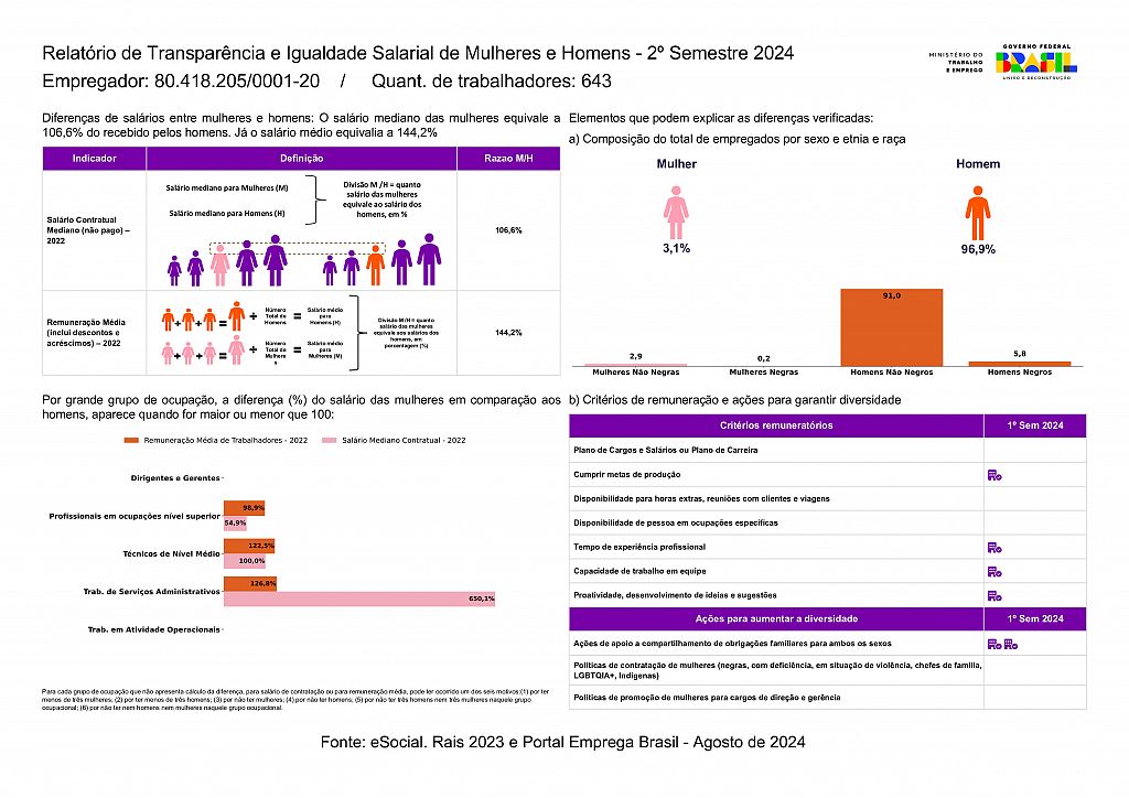 O relatório de transparência salarial do MTE está disponível para acesso ao público.