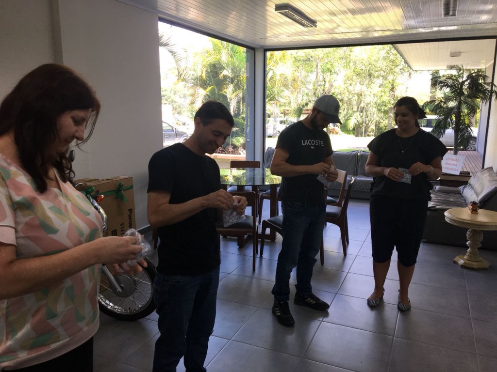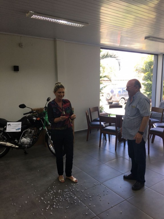 Após, em confraternização, mais uma vez sorteou, três TV´s de Led 32 polegadas entre seus colaboradores pela assiduidade, no segundo semestre do ano e ainda uma Moto Honda CG Fan 125, para todos que durante todo o ano de 2017 trabalharam diariamente, com número de faltas zero.