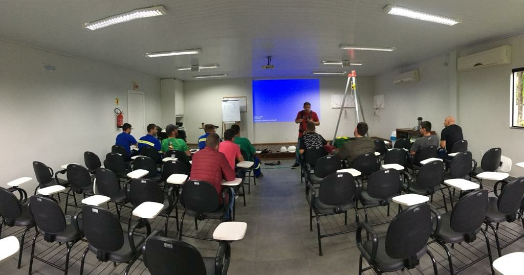 Na última semana tivemos o Treinamento de Reciclagem da NR 35 sobre trabalho em altura, ministrado por Gian Sehenen Técnico de Segurança da SATC, onde tivemos 14 profissionais.
