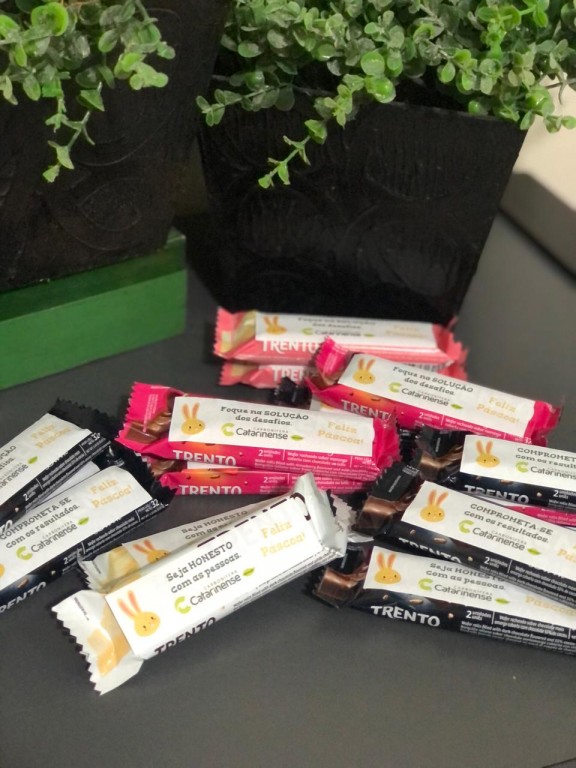 A Páscoa cristã rememora anualmente o sacrifício feito por Jesus Cristo, ao ser crucificado, para salvar a humanidade. É um momento em que se resgata o que é essencial na vida de cada pessoa. A Carbonífera Catarinense Ltda usou de uma ação simples para estimular os profissionais da empresa a refletirem sobre a passagem da Páscoa e os valores que devem ser praticados diariamente. Na ação Páscoa de Valores, os chocolates entregues aos colaboradores, além de doçura e afeto, continham frases para relembrar sobre o que realmente importa em nossas vidas.
