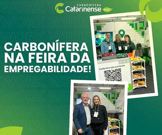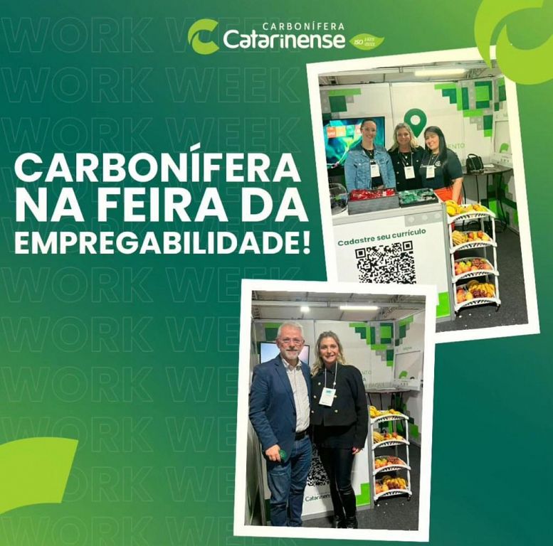 Nos dias 18 e 19 de outubro, a Carbonífera Catarinense participou da 16ª Feira da Empregabilidade, recebendo a ilustre visita do Sr. Carlos Antonio Ferreira, Reitor do Centro Acadêmico UniSatc - SATC, e da Sra. Astrid Barato, Administradora da Carbonífera Catarinense e Presidente do Siecesc.