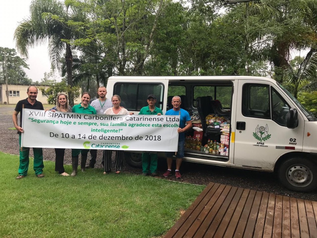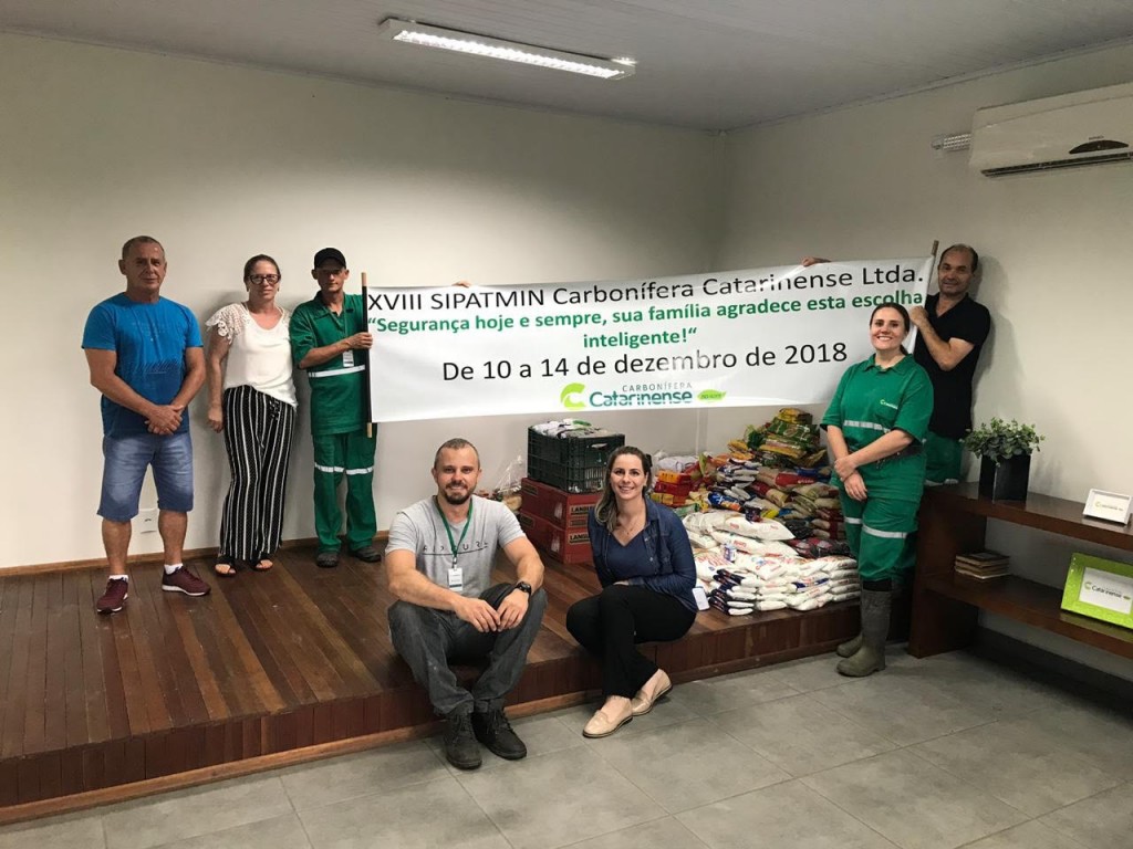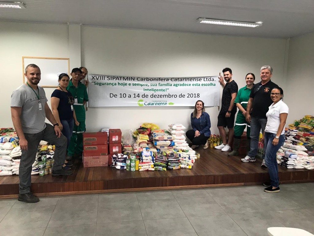 AS EQUIPES PARTICIPANTES DA GINCANA QUE ACONTECEU DURANTE A XVIII SIPATMIN DA CARBONÍFERA CATARINENSE, COM A AJUDA DOS FUNCIONÁRIOS, CONSEGUIRAM ARRECADAR MAIS DE 1800 KG DE ALIMENTOS QUE FORAM REPASSADOS PARA TRÊS ENTIDADES DO MUNICÍPIO DE LAURO MÜLLER, SÃO ELAS, APAE, CAPS I E ALA PSIQUIÁTRICA DO HOSPITAL HENRIQUE LAGE.