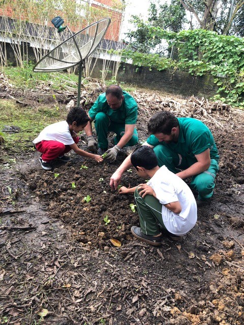 Em prática, na segunda etapa do projeto, todos puderam aprender e ter a experiência de confeccionar uma horta, que os próprios alunos irão cuidar das mudas plantadas e também desfrutar dos alimentos.