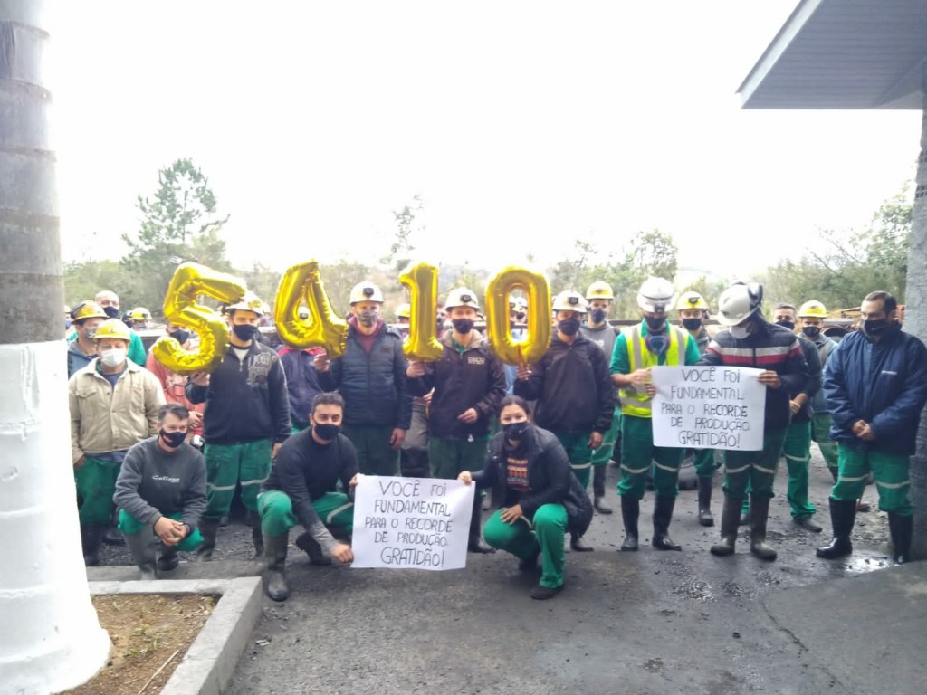 Estamos muito felizes por poder compartilhar esta notícia! Um recorde histórico foi alcançado pelos profissionais da Mina Bonito. A unidade produziu 5.410 toneladas de carvão, volume nunca antes atingido na CCL. Para celebrar este feito histórico, os profissionais foram recebidos no trabalho com cartazes, balões e fogos de confete, em um ato simbólico para reconhecer o empenho de todos. Os diretores Astrid Barato, Sandro Madeira e o engenheiro Evandro Favaretto destacaram a importância do espírito de união e trabalho colaborativo, fundamentais para que a equipe CCL tivesse este resultado. Parabéns a todos!
