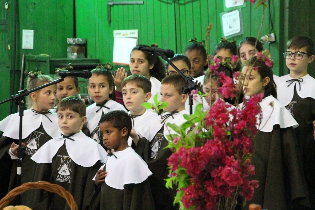 a celebração que foi animada pelo Coral Infanto-Juvenil Anjos Mineiros, sob