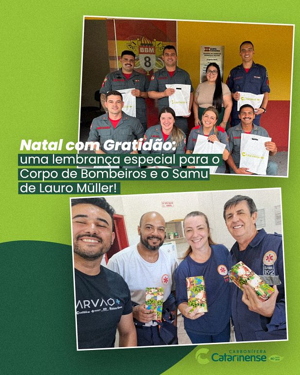 A Carbonífera Catarinense levou uma lembrança especial de Natal ao Corpo de Bombeiros e o Samu de Lauro Müller.