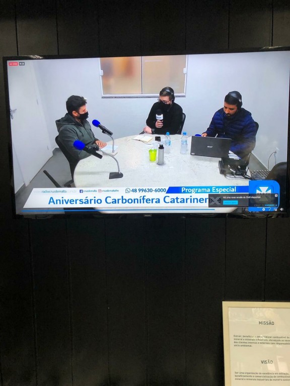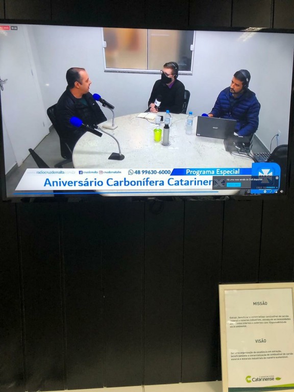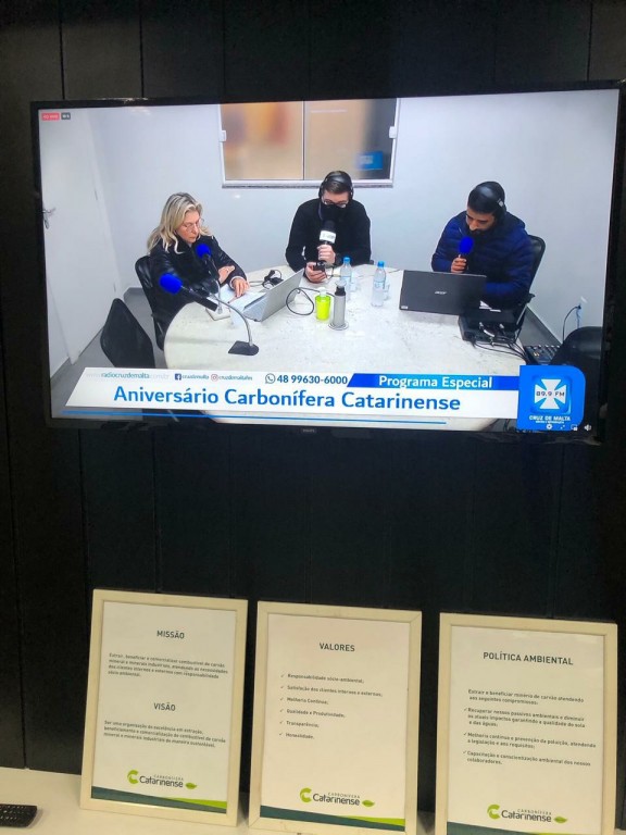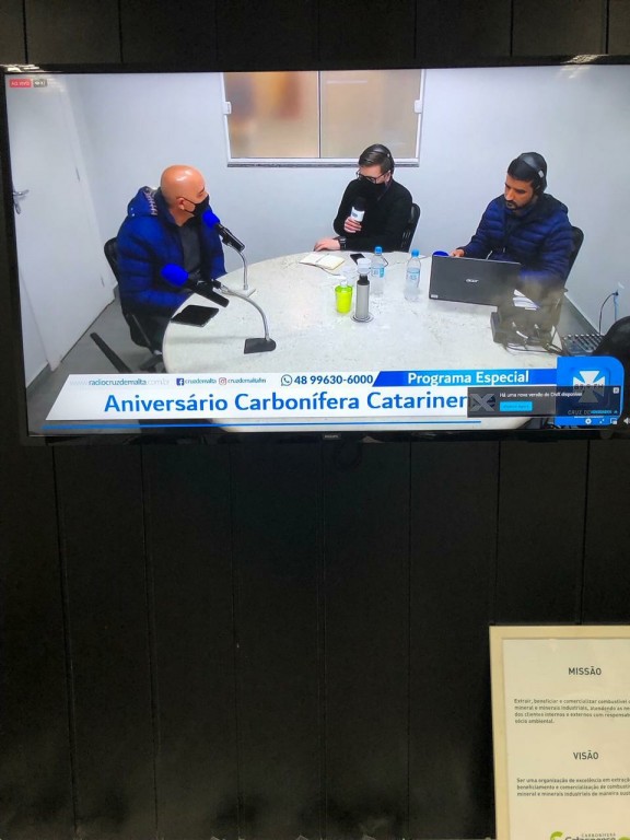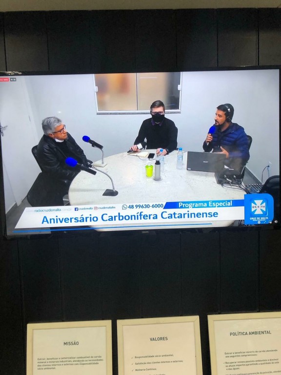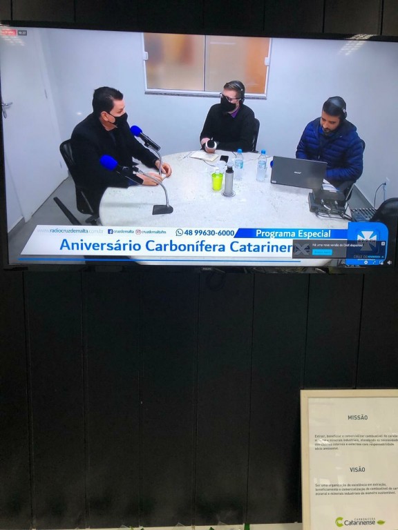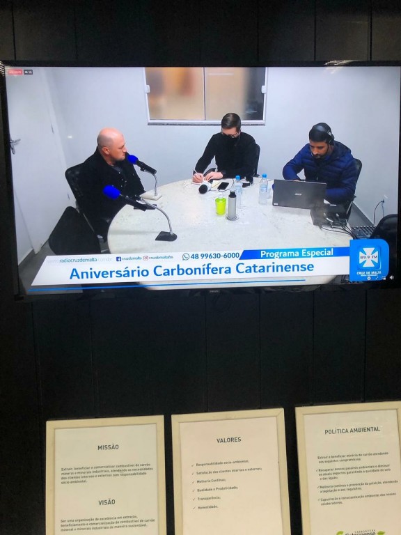 A diretora da CCL, Astrid Barato Mendonça, contou sobre a fundação da CCL, os desafios e oportunidades do setor, e também da gratidão e o orgulho de construir uma empresa que constribui para o desenvolvimento de Lauro Müller. A vice-prefeita Soraya Librelato participou da transmissão confirmando a importância da CCL para o município. O programa Cruz de Malta Notícias contou ainda com a participação dos profissionais José Carlos, Lindomar Catâneo, Ademir Antunes, Alexsandro Madeira e do Coronel Márcio Cabral, diretor executivo do Siecesc - Sindicato da Indústria de Extração de Carvão do Estado de Santa Catarina.