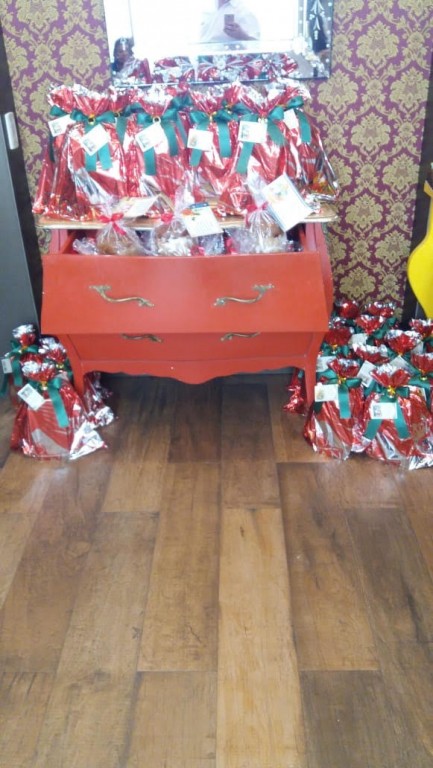 PARA ENCERRAR AS ATIVIDADES DO ANO, AS VOLUNTÁRIAS DA ASSOCIAÇÃO BENEFICENTE ANJOS MINEIROS FORAM AGRACIADAS NA TARDE DO DIA 22 COM UM DELICIOSO CAFÉ, NA CASA DO DOCE , EM COCAL DO SUL, ONDE A ALEGRIA TOMOU CONTA DO AMBIENTE PELA CARINHOSA TROCA DE PRESENTES, PELAS HOMENAGENS DE GRATIDÃO DA CARBONÍFERA CATARINENSE ATRAVÉS DE LEMBRANÇAS, MENSAGENS E SORTEIO DE UMA LINDA CESTA DE NATAL ENTRES ELAS E AINDA PELO RECONHECIMENTO DA SUA DIRETORIA, OFERECENDO A CADA UMA, UM PRESENTE COM MENSAGENS DE AGRADECIMENTO, REFERINDO-SE AO NASCIMENTO DO MENINO JESUS E AO NASCIMENTO DE TANTOS MENINOS E MENINAS QUE RECEBEM CALOR ATRAVÉS DO AMOR QUE SÃO CONFECCIONADOS OS ENXOVAIS DE BEBÊ QUE SÃO DOADOS.